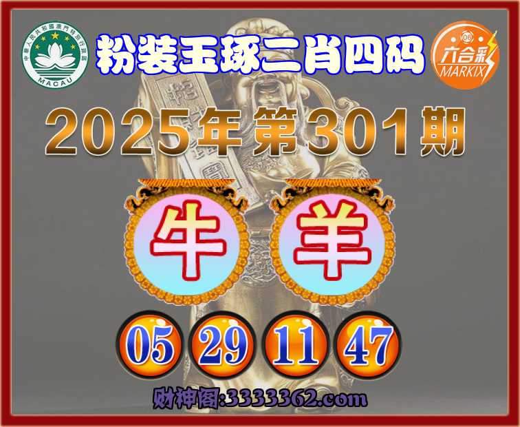 301期: ♠️『粉装玉琢』 ♠️二肖四码♠️【羊】【05.29.11.47】开:牛05
