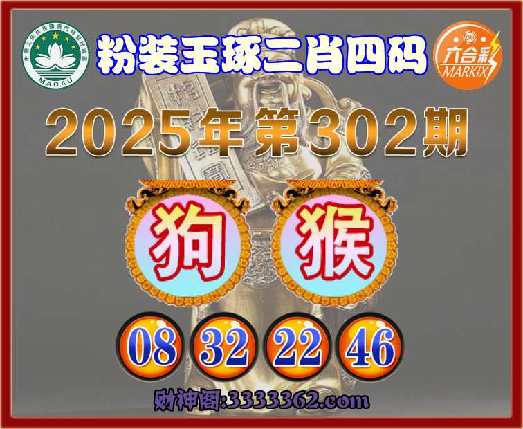 302期: ♠️『粉装玉琢』 ♠️二肖四码♠️【狗】【08.32.22.46】开:猴22