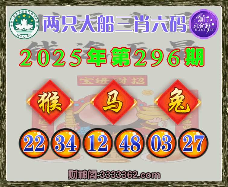 296期: 🥫『两只大船』 🥫三肖六码🥫【马兔】开:猴22
