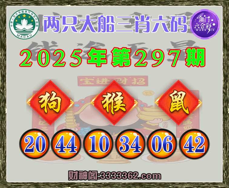 297期: 🥫『两只大船』 🥫三肖六码🥫【猴鼠】开:狗44