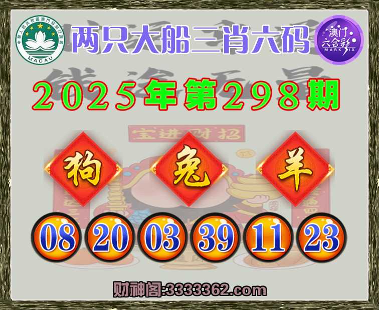298期: 🥫『两只大船』 🥫三肖六码🥫【狗兔】开:羊23