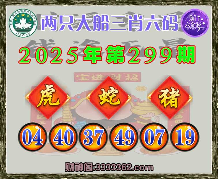 299期: 🥫『两只大船』 🥫三肖六码🥫【虎猪】开:蛇49