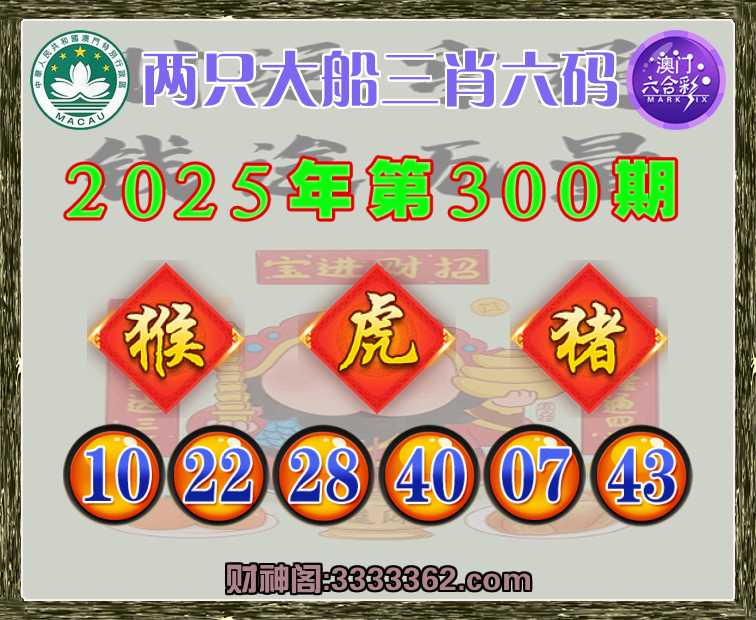 300期: 🥫『两只大船』 🥫三肖六码🥫【猴猪】开:虎40