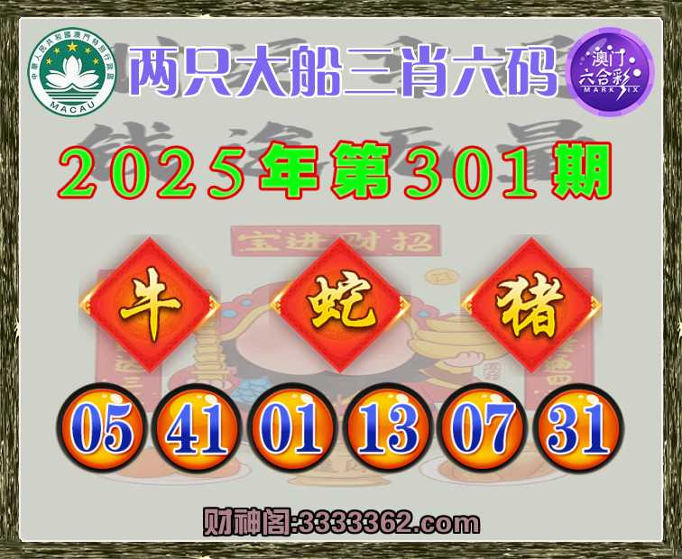 301期: 🥫『两只大船』 🥫三肖六码🥫【蛇猪】开:牛05