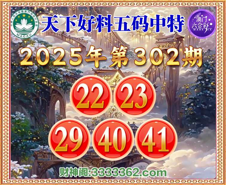 302期:《天下好料》 🍅五码中特🍅【22.23.29.40.41】开:22