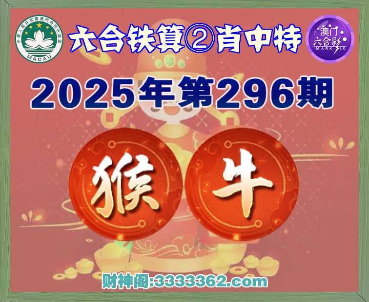 296期: 六合铁算 🥩②肖中特🥩【.牛】开:猴22