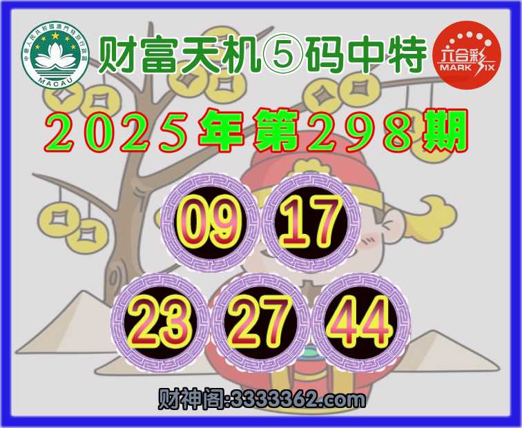 298期:『财富天机』⑤码中特✨【09.17.23.27.44】开:23