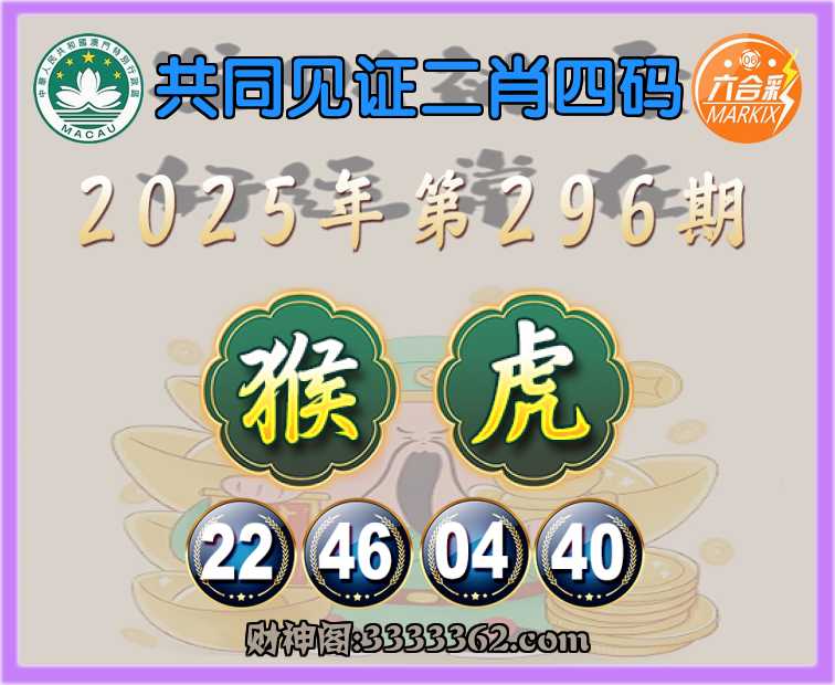 296期:『共同见证』 ♠️二肖四码♠️【虎】【22.46.04.40】开:猴22
