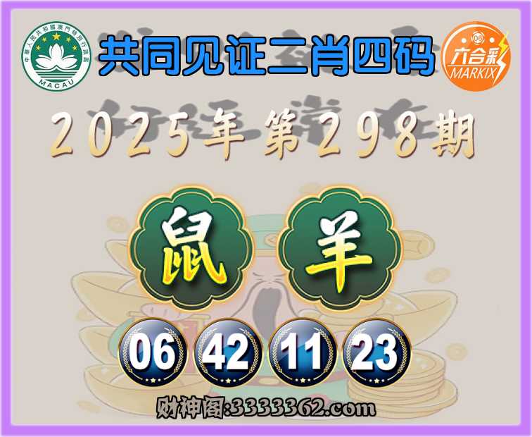 298期:『共同见证』 ♠️二肖四码♠️【鼠】【06.42.11.23】开:羊23