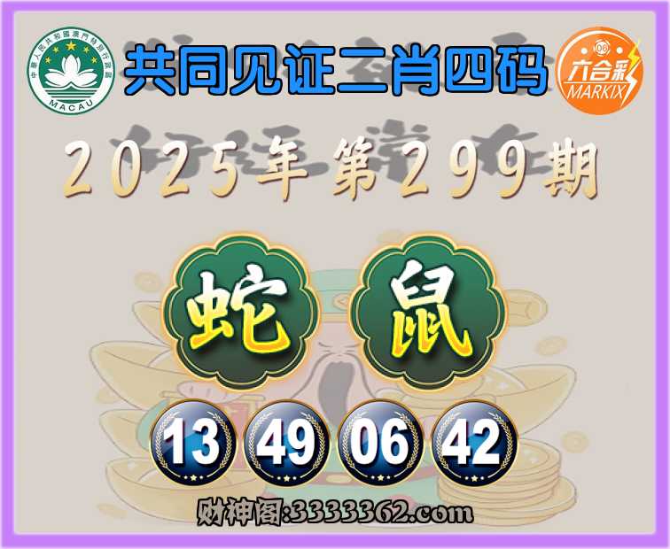 299期:『共同见证』 ♠️二肖四码♠️【鼠】【13.49.06.42】开:蛇49