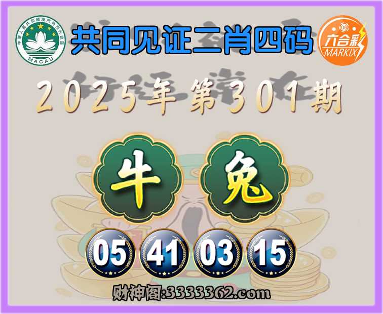 301期:『共同见证』 ♠️二肖四码♠️【兔】【05.41.03.15】开:牛05