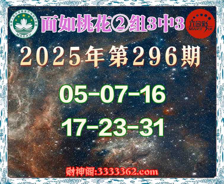 296期: 🧩《面如桃花》 🧩②组3中3🧩