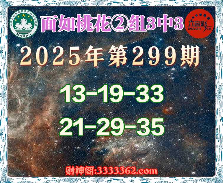 299期: 🧩《面如桃花》 🧩②组3中3🧩