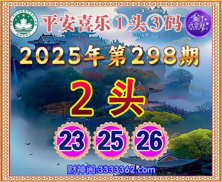 298期:『平安喜乐』 👉①头③码👉【2头主:23.25.26】开:羊23