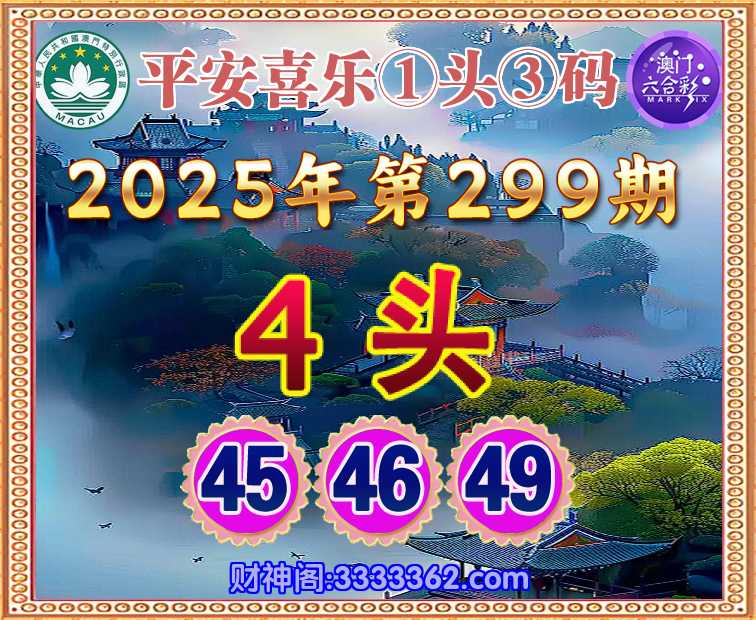299期:『平安喜乐』 👉①头③码👉【4头主:45.46.49】开:蛇49