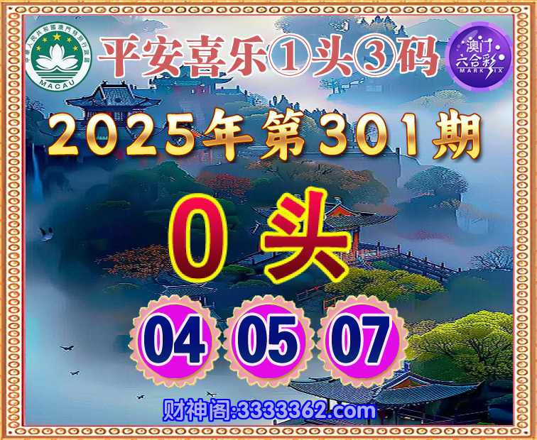 301期:『平安喜乐』 👉①头③码👉【0头主:04.05.07】开:牛05