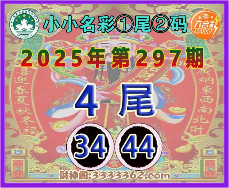 297期:《小小名彩》 🥽①尾②码🥽【4尾主:34.44】开:44