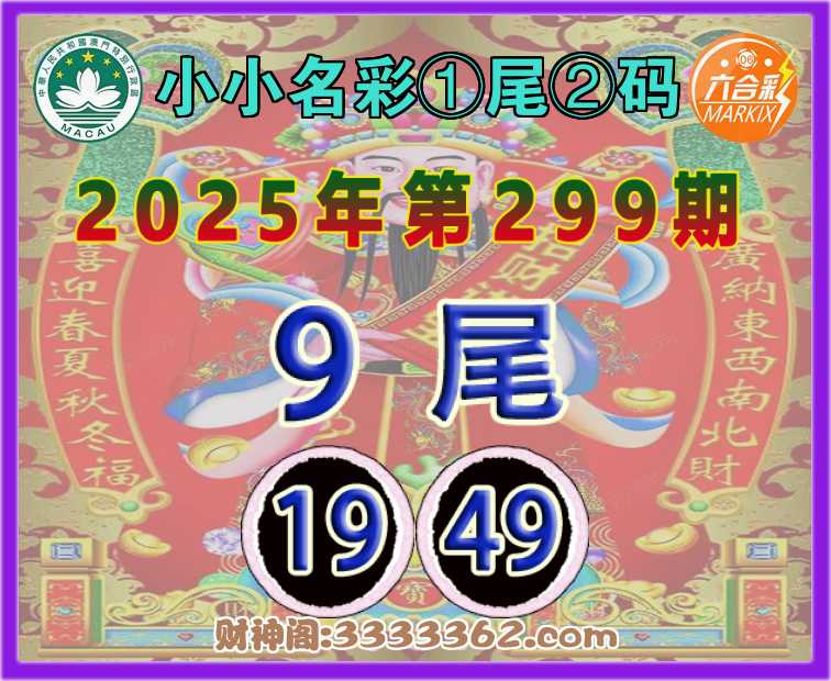 299期:《小小名彩》 🥽①尾②码🥽【9尾主:19.49】开:49