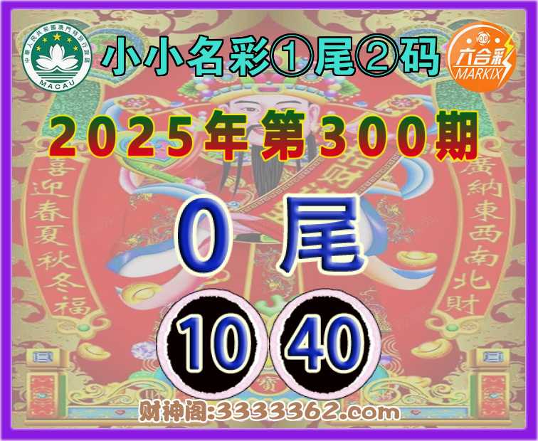 300期:《小小名彩》 🥽①尾②码🥽【0尾主:10.40】开:40