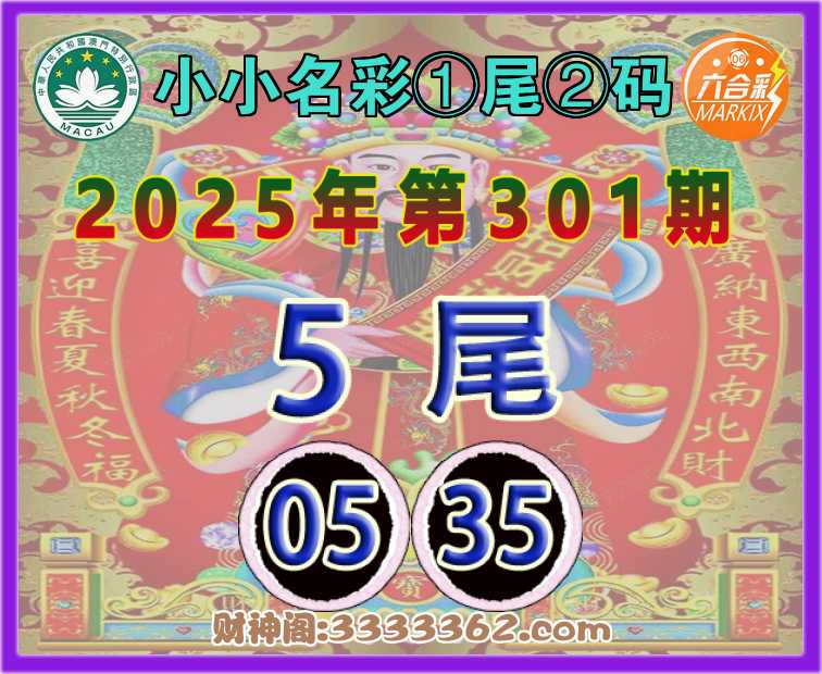 301期:《小小名彩》 🥽①尾②码🥽【5尾主:05.35】开:05