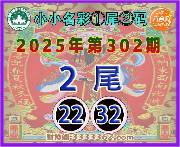 302期:《小小名彩》 🥽①尾②码🥽【2尾主:22.32】开:22