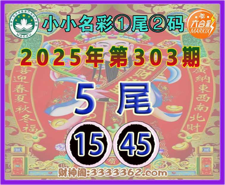 303期:《小小名彩》 🥽①尾②码🥽【5尾主:15.45】开:15