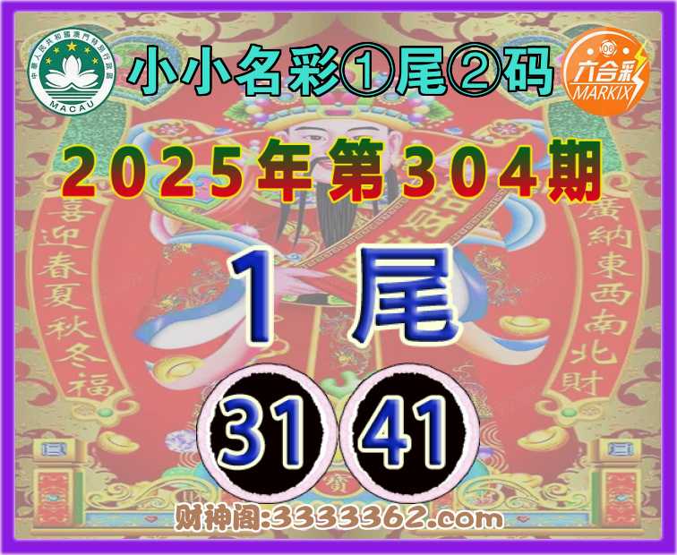 304期:《小小名彩》 🥽①尾②码🥽【1尾主:31.41】开:00准