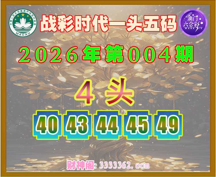 004期:《战彩时代》 🏇一头五码🏇【4头主:40.43.44.45.49】开:45
