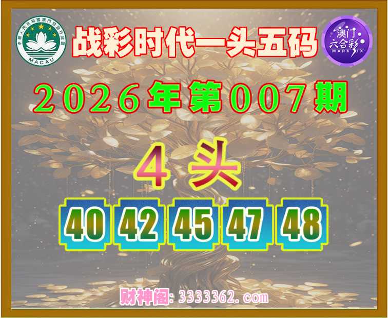 007期:《战彩时代》 🏇一头五码🏇【4头主:40.42.45.47.48】开:00准