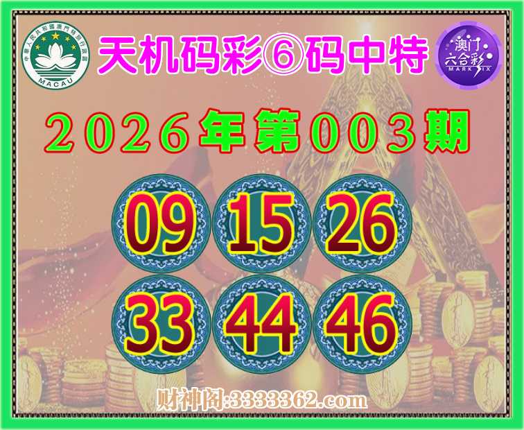 003期:《天机码彩》 ☝️⑥码中特☝️【09.15.26.33.44.46】开:09