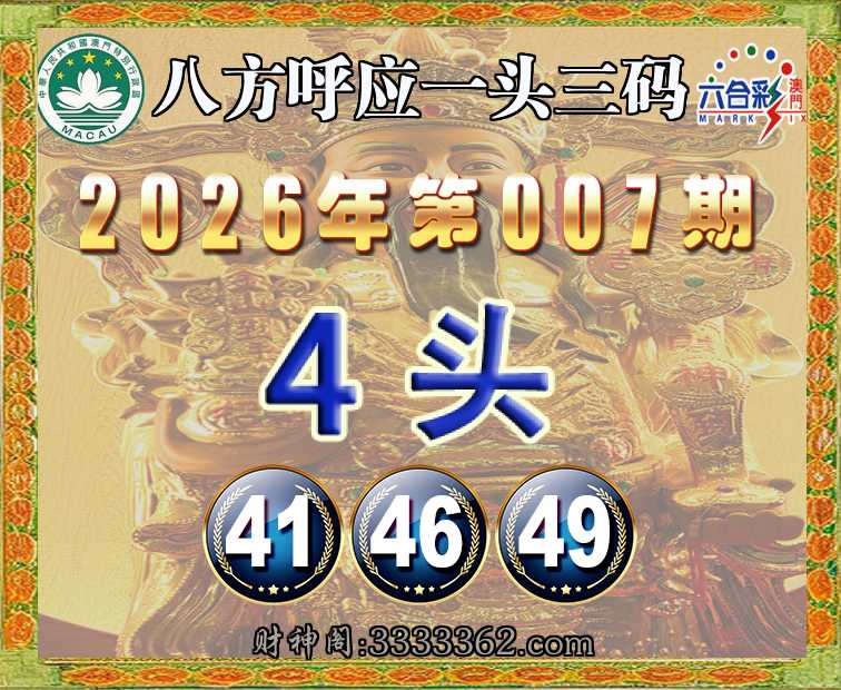 007期:《八方呼应》 🧤一头三码🧤【4头主:41.46.49】开:牛41