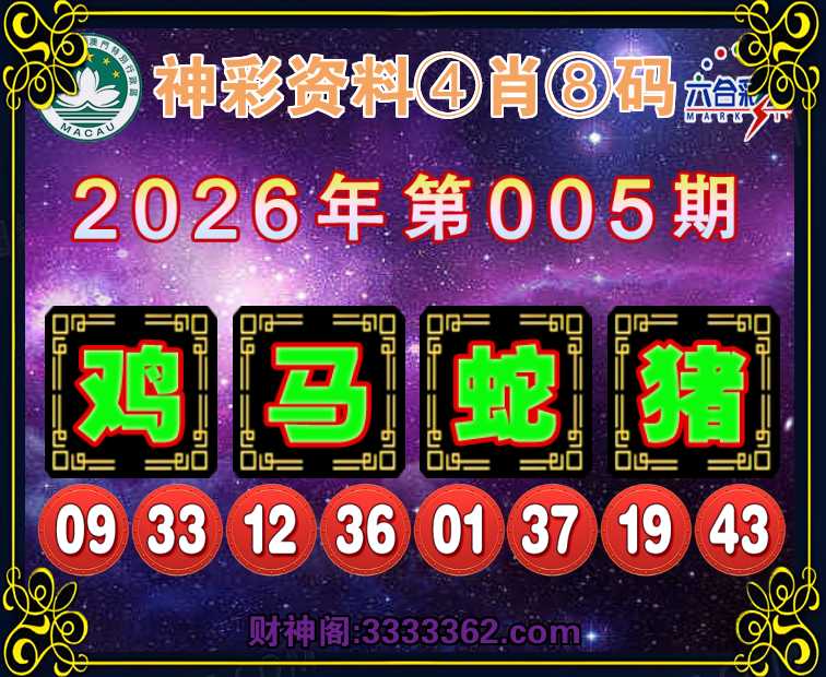 005期:『神彩资料』 ☝️④肖⑧码☝️【鸡马蛇】开:猪43