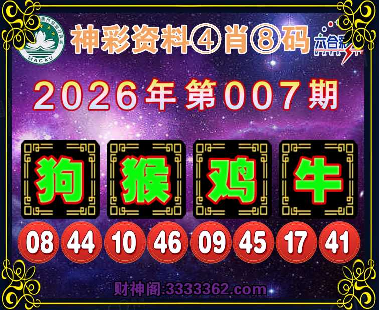 007期:『神彩资料』 ☝️④肖⑧码☝️【狗猴鸡】开:牛41