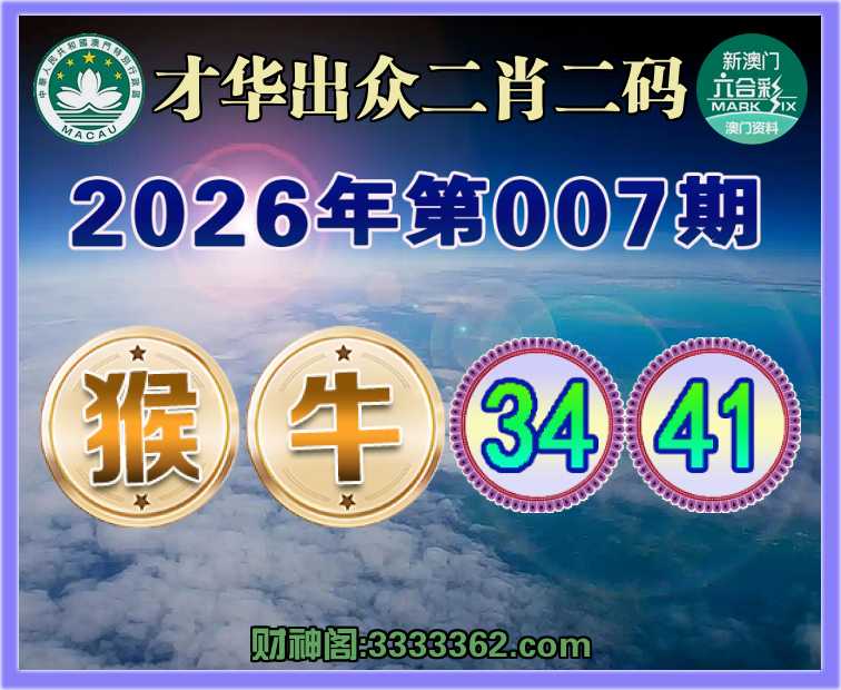 007期:《才华出众》 ♥️二肖二码♥️【猴】【34.41】开:牛41