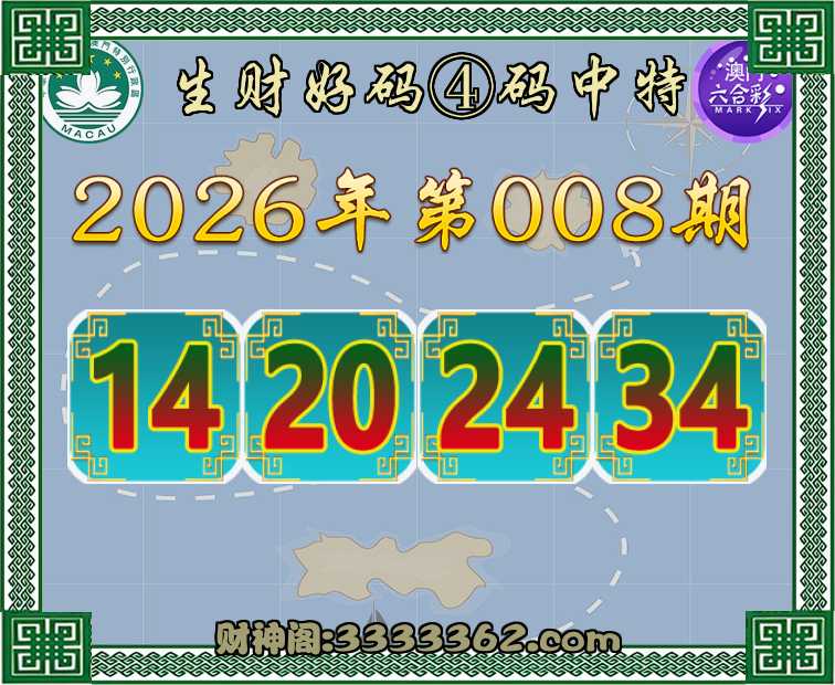 008期: 👚『生财好码』 👚④码中特👚【14.20.24.34】开:00准