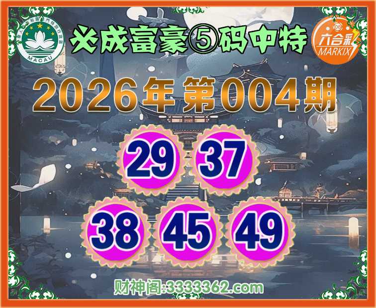 004期:『必成富豪』 🧶⑤码中特🧶【29.37.38.45.49】开:45