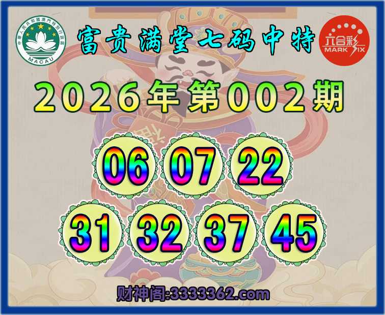 002期:【富贵满堂】 ☺️七码中特☺️【06.07.22.31.32.37.45】开:22