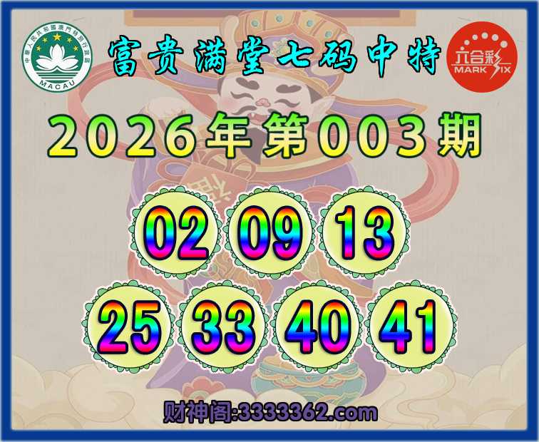 003期:【富贵满堂】 ☺️七码中特☺️【02.09.13.25.33.40.41】开:09