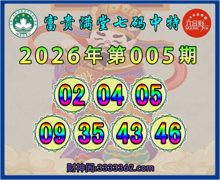005期:【富贵满堂】 ☺️七码中特☺️【02.04.05.09.35.43.46】开:43