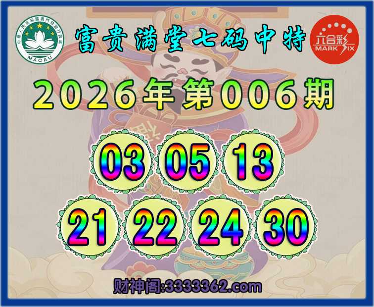 006期:【富贵满堂】 ☺️七码中特☺️【03.05.13.21.22.24.30】开:13