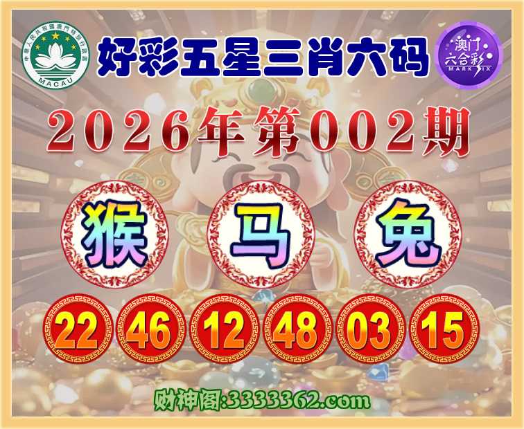 002期:【好彩五星】 🍎三肖六码🍎【马兔】开:猴22