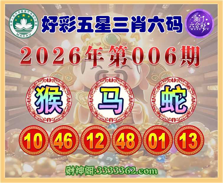 006期:【好彩五星】 🍎三肖六码🍎【猴马】开:蛇13