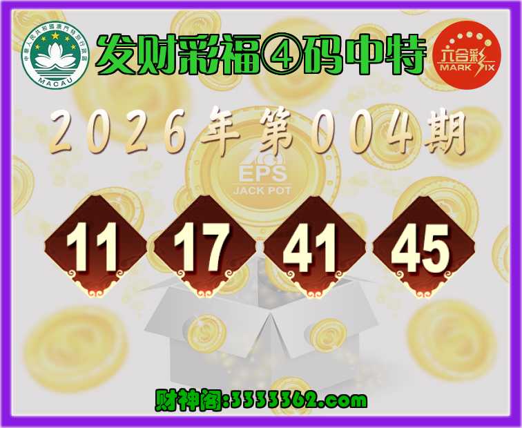 004期:【发财彩福】 🏇④码中特🏇【11.17.41.45】开:45