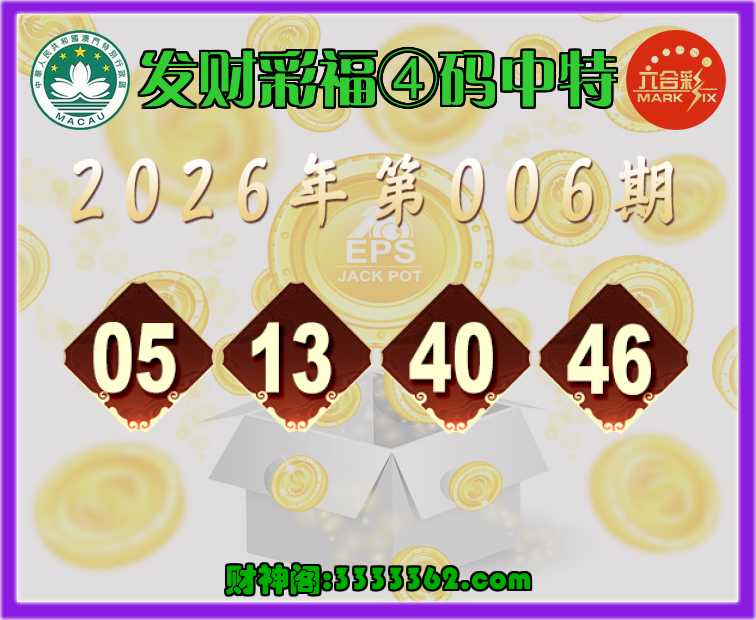 006期:【发财彩福】 🏇④码中特🏇【05.13.40.46】开:13