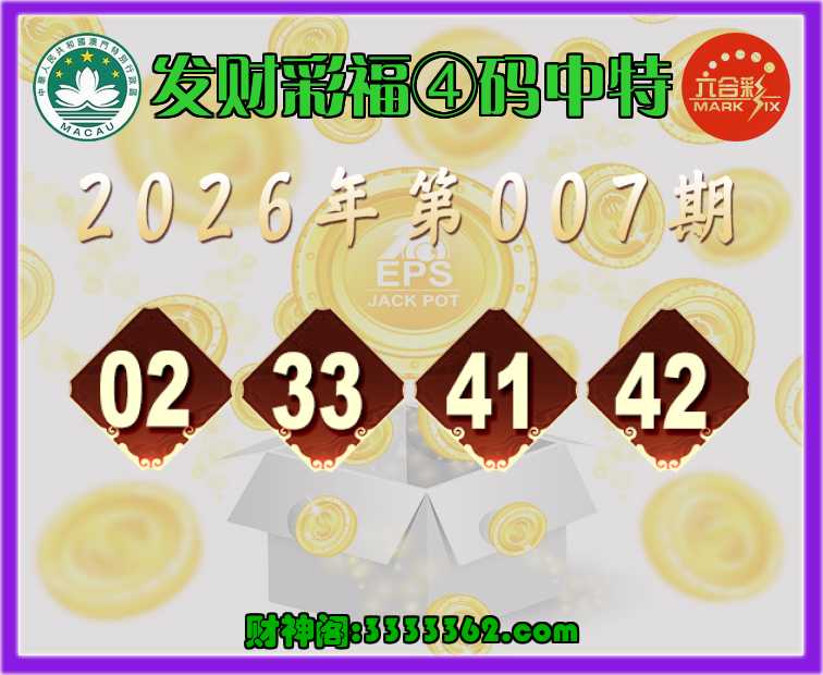 007期:【发财彩福】 🏇④码中特🏇【02.33.41.42】开:41