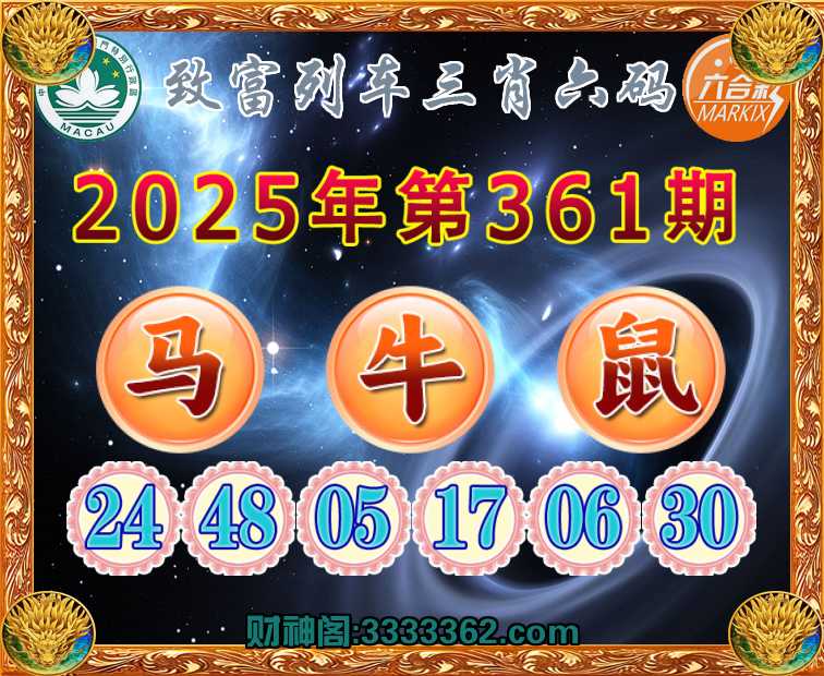 361期:【致富列车】 😜三肖六码😜【牛鼠】开:马24