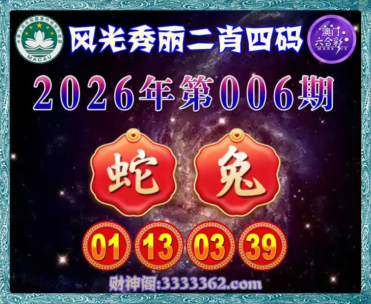 006期:《风光秀丽》 ♣️二肖四码♣️【兔】【01.13.03.39】开:蛇13