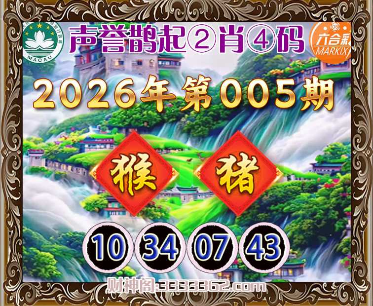 005期: 声誉鹊起 🐁②肖④码🐁【猴】【10.34.07.43】开:猪43