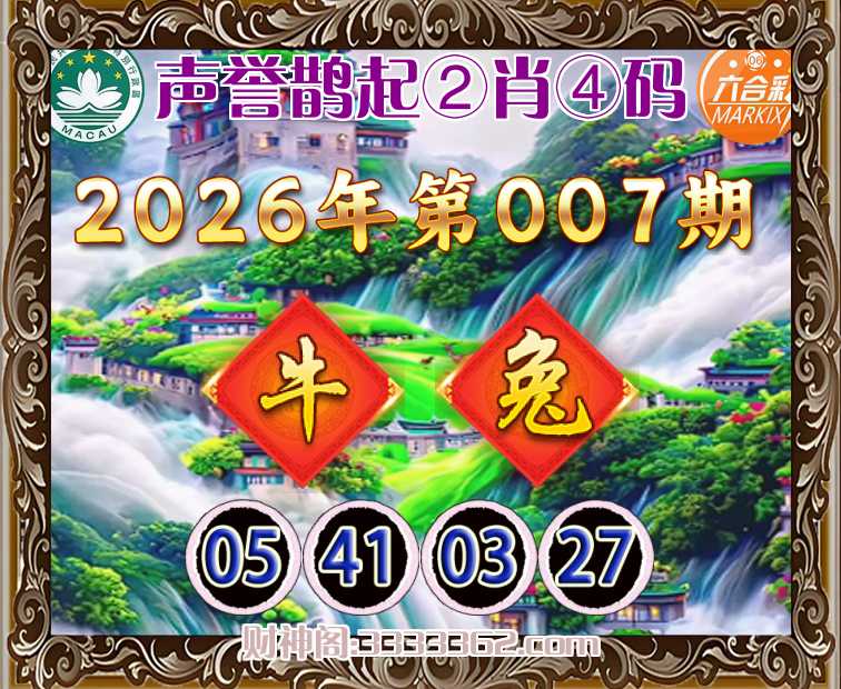 007期: 声誉鹊起 🐁②肖④码🐁【兔】【05.41.03.27】开:牛41