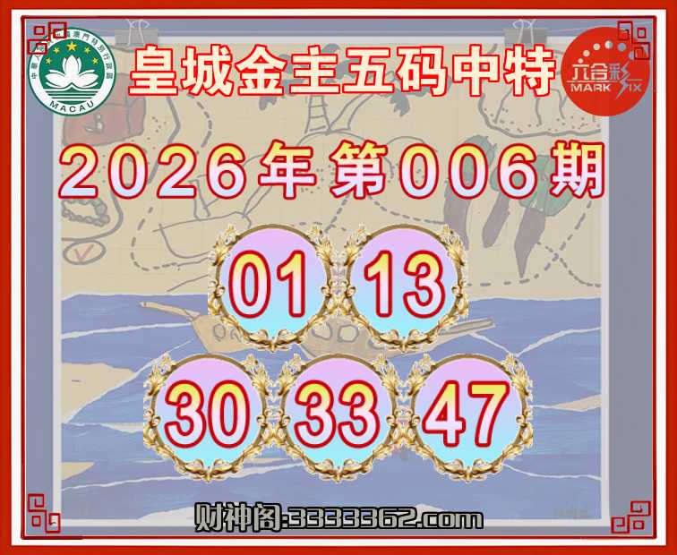 006期:《皇城金主》 🧸五码中特🧸【01.13.30.33.47】开:13